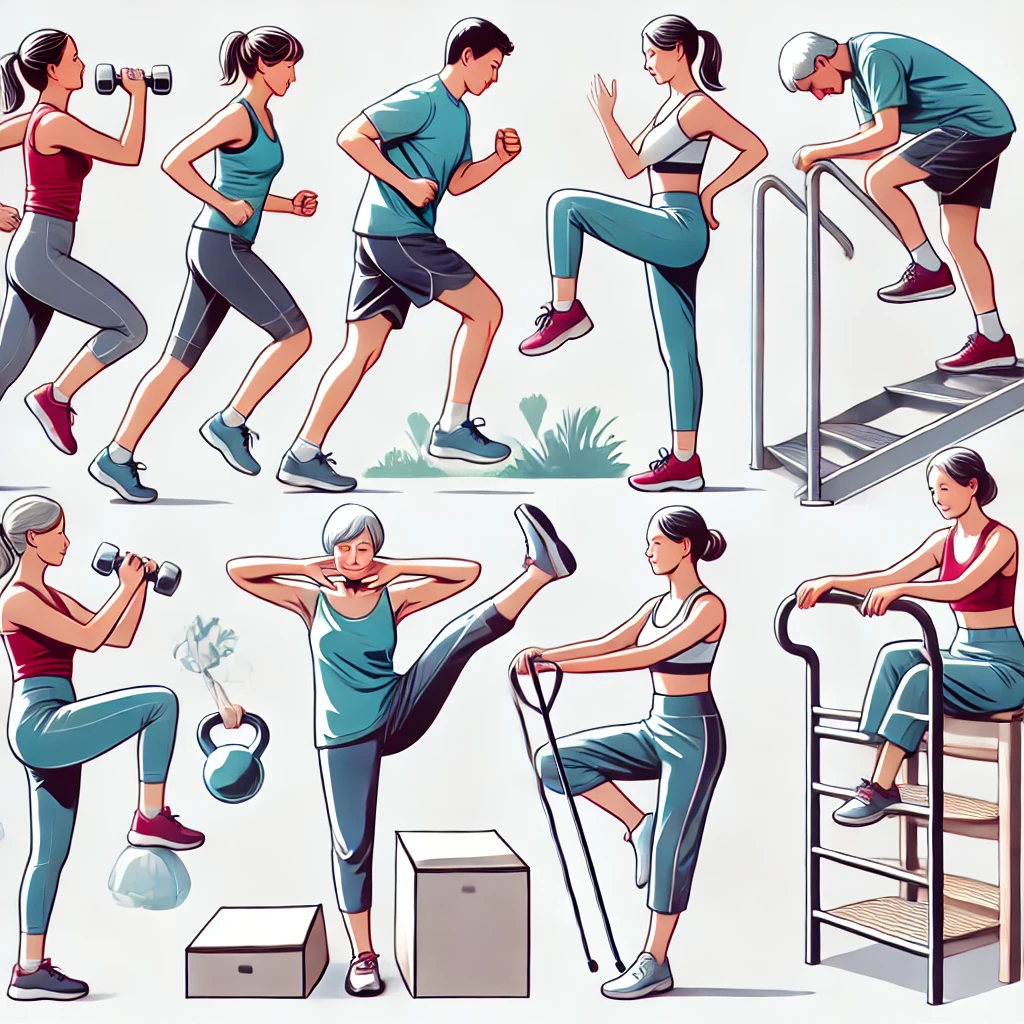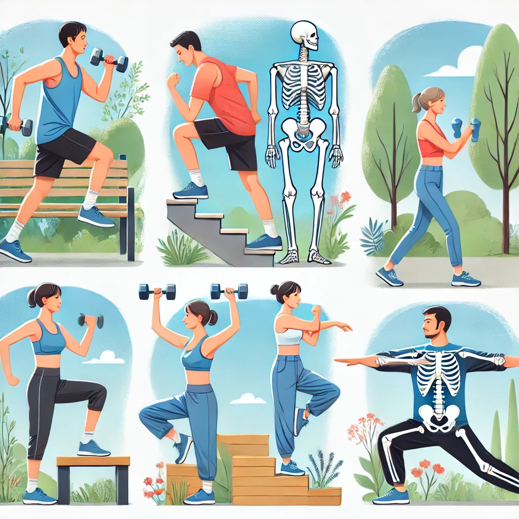 - 계단 오르기: 체중을 이용한 운동 중 하나로, 뼈와 관절을 단련하는 데 좋습니다.