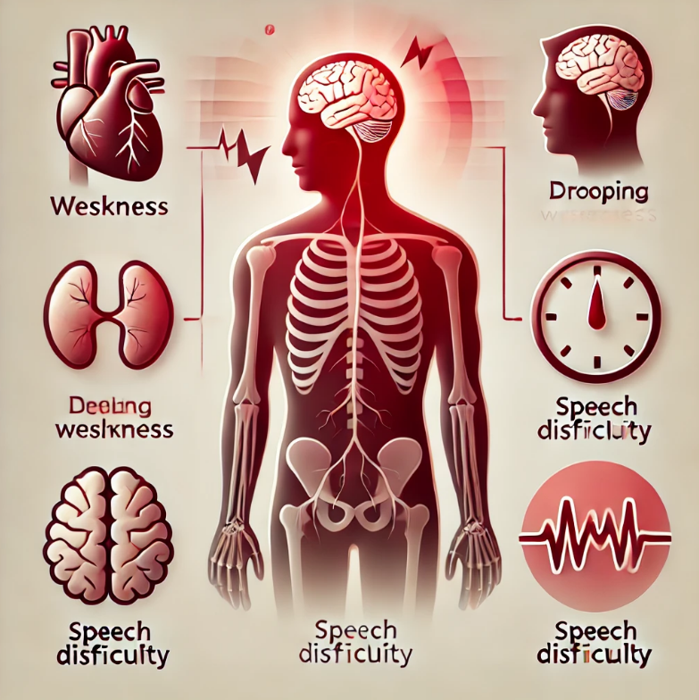- 특징: 웃을 때 한쪽 입꼬리가 처지거나, 팔이나 다리의 힘이 빠지는 증상